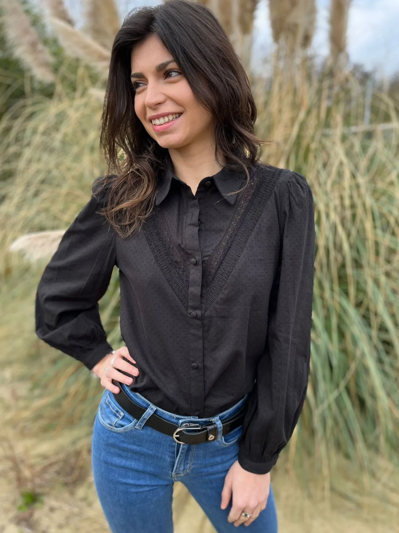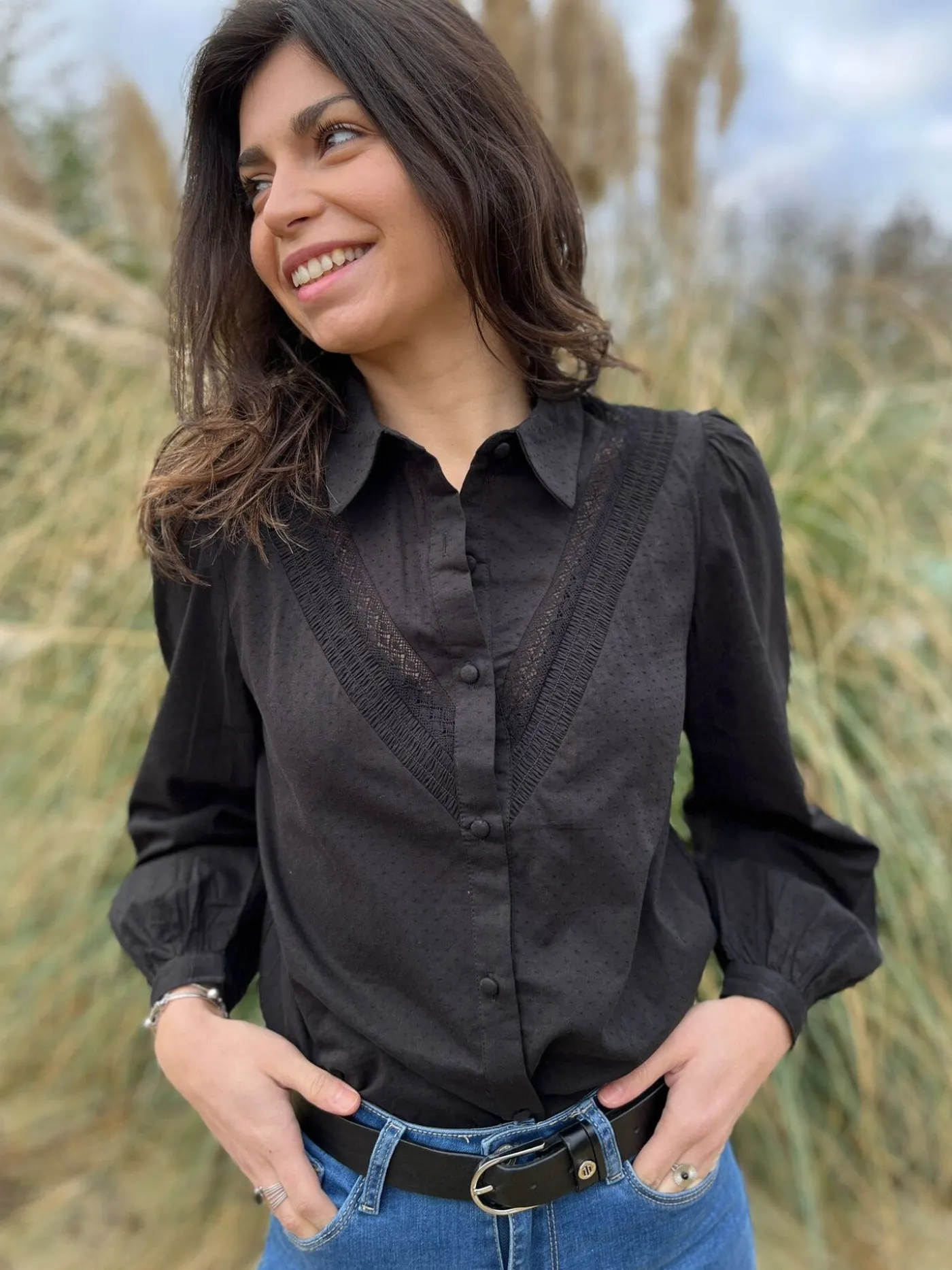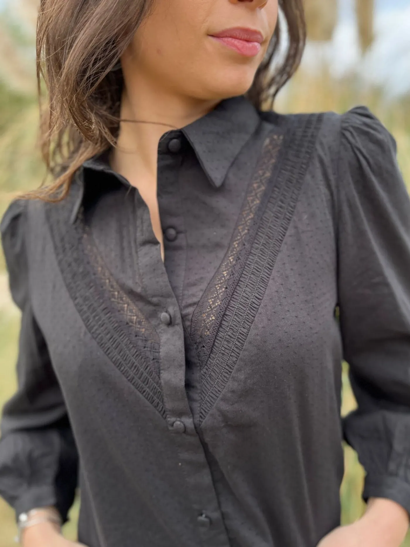 CHEMISIER À ML AVEC DENTELLEJustine mesure 1m69. Elle porte la taille S pour ce modèle. Nous vous recommandons de por…