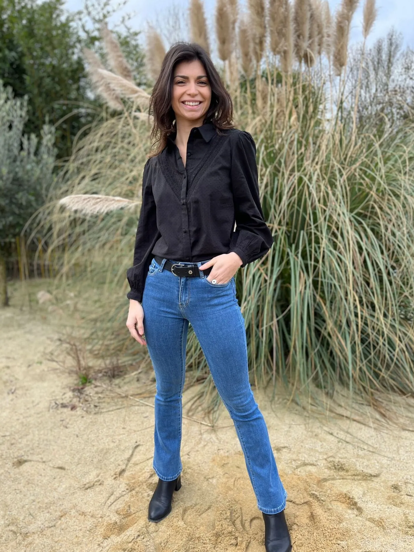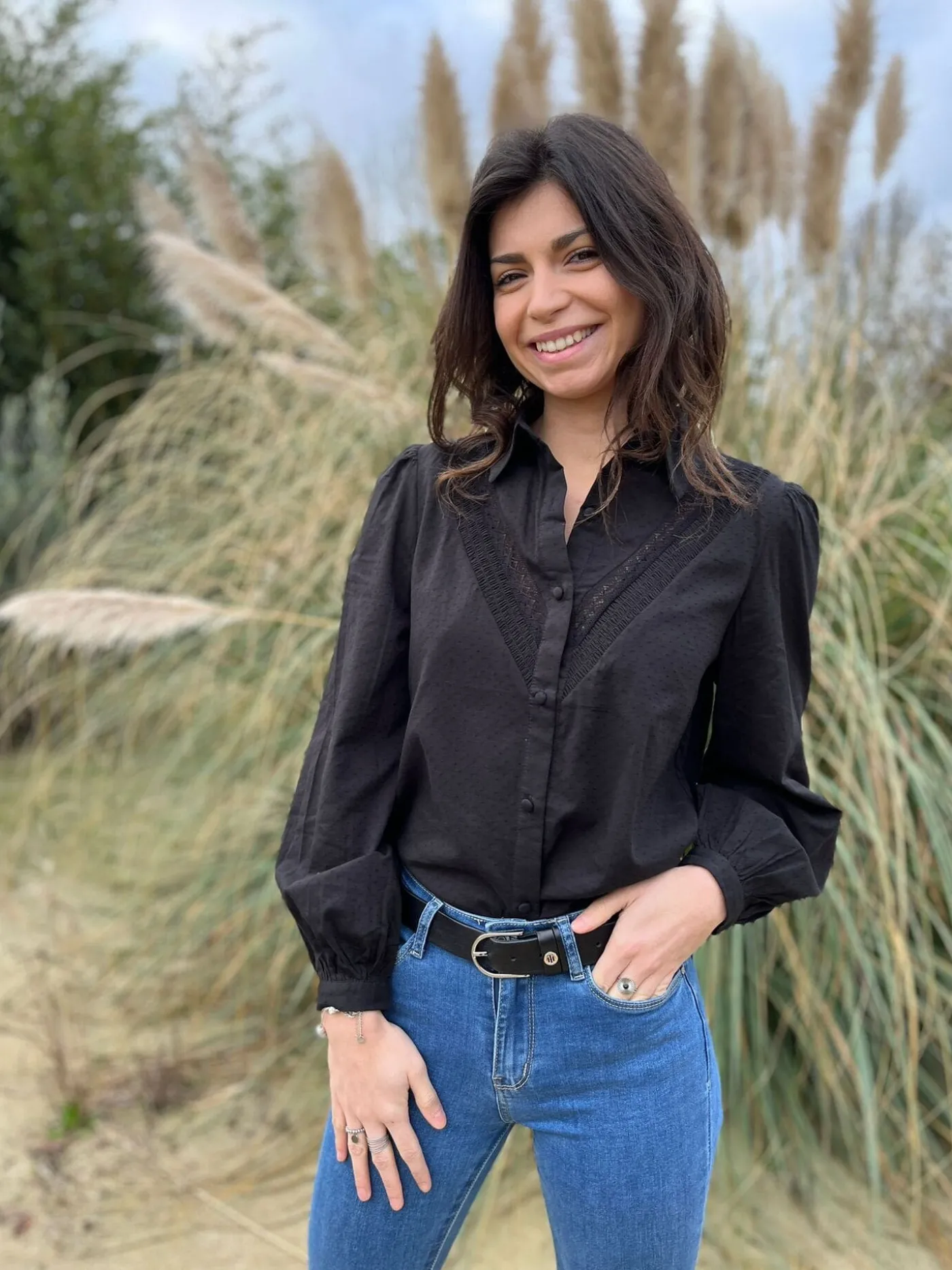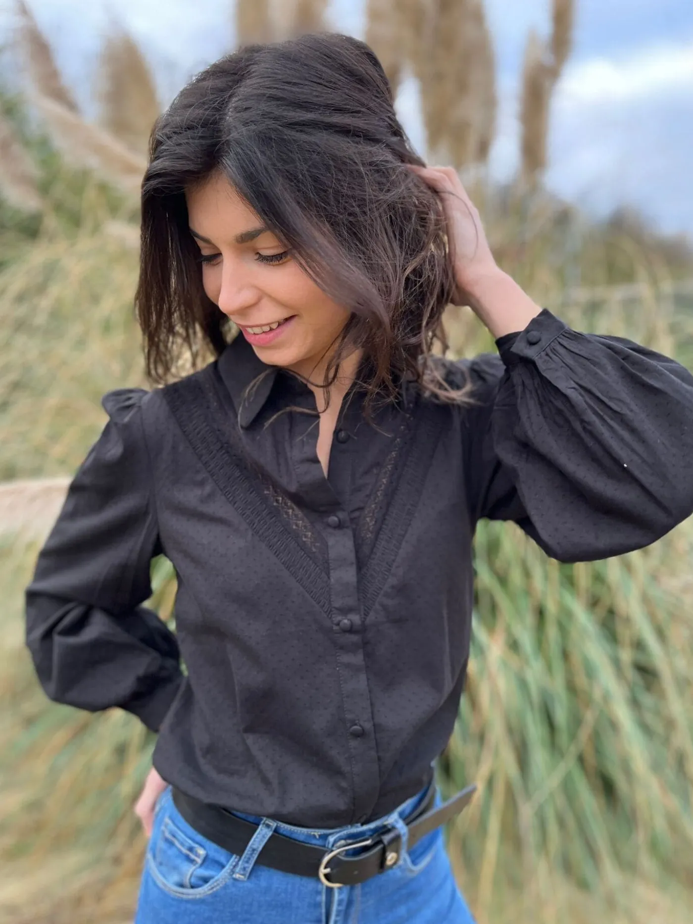 CHEMISIER À ML AVEC DENTELLEJustine mesure 1m69. Elle porte la taille S pour ce modèle. Nous vous recommandons de por…
