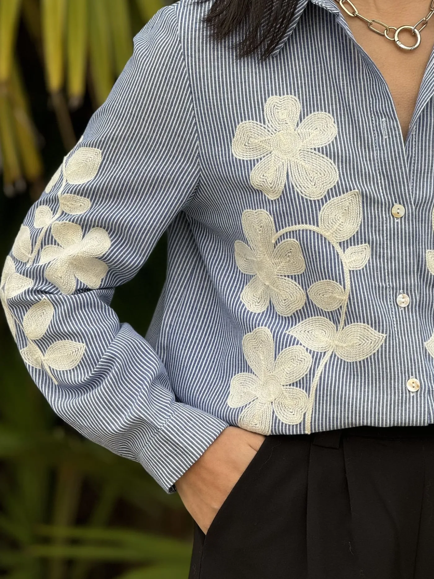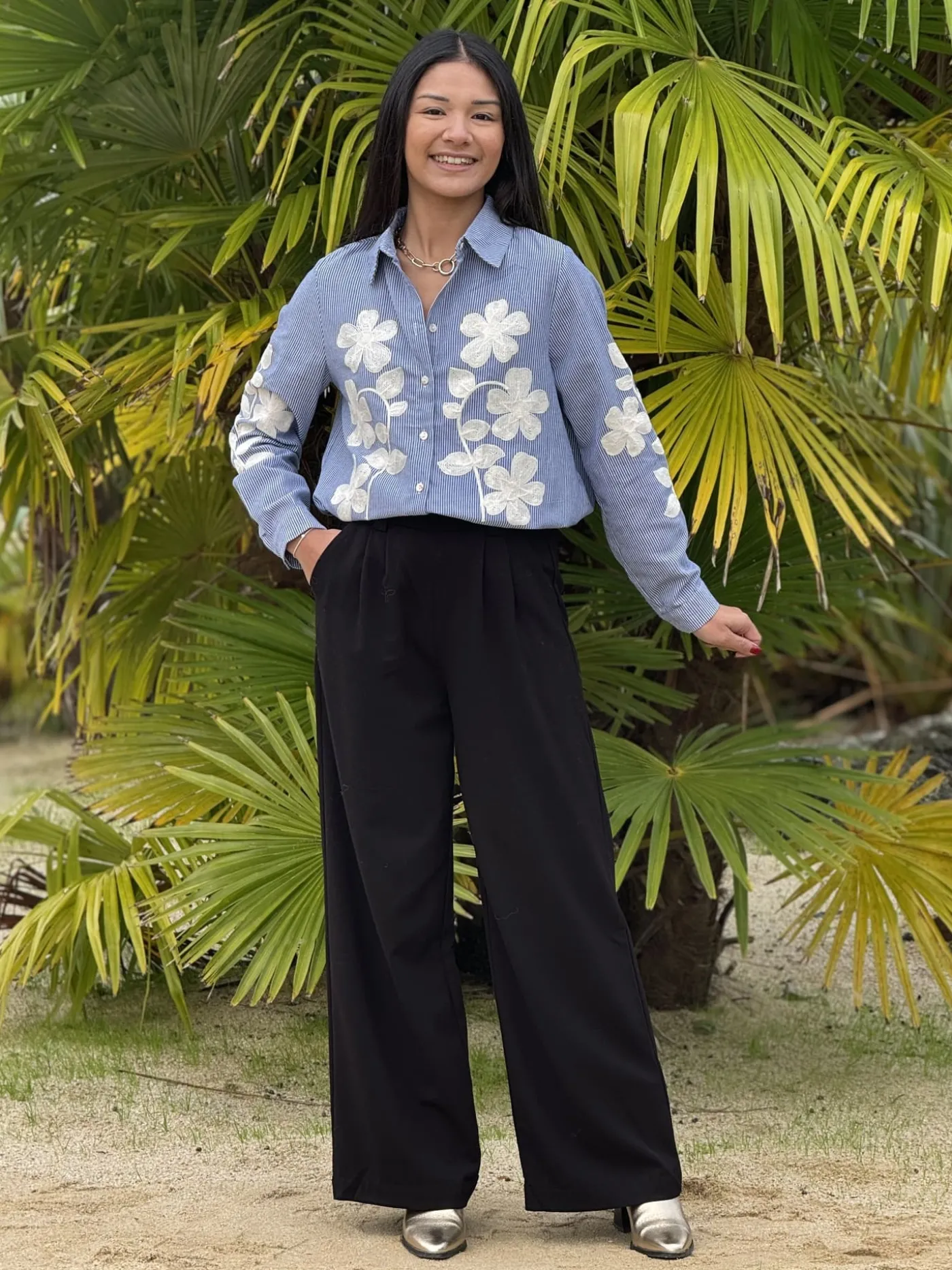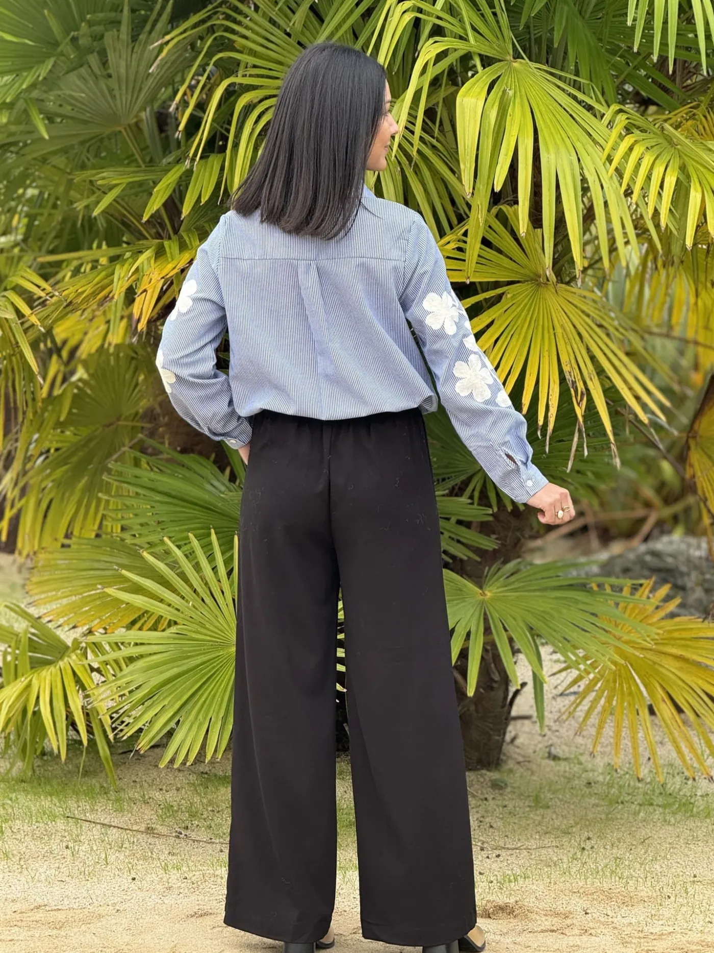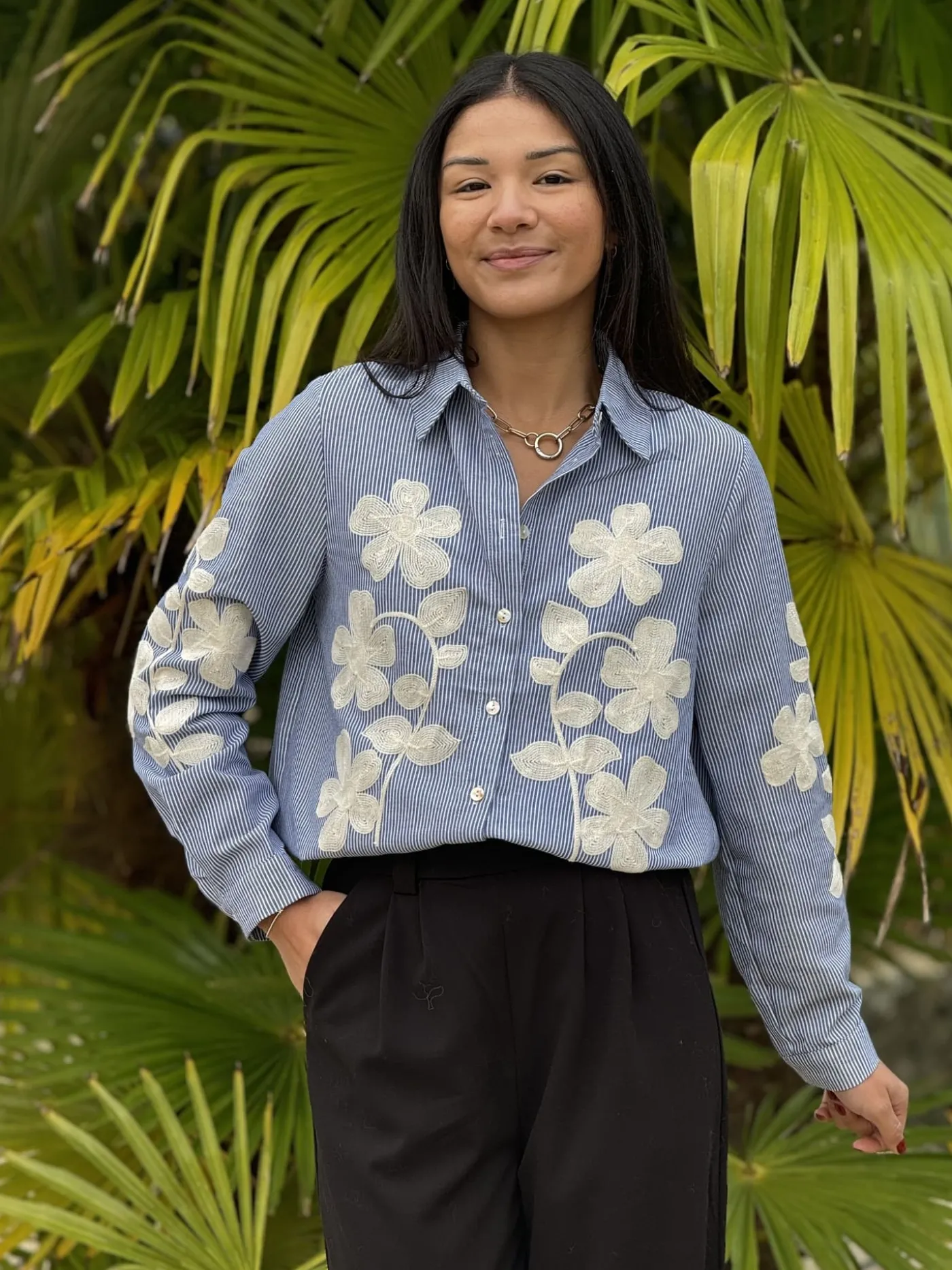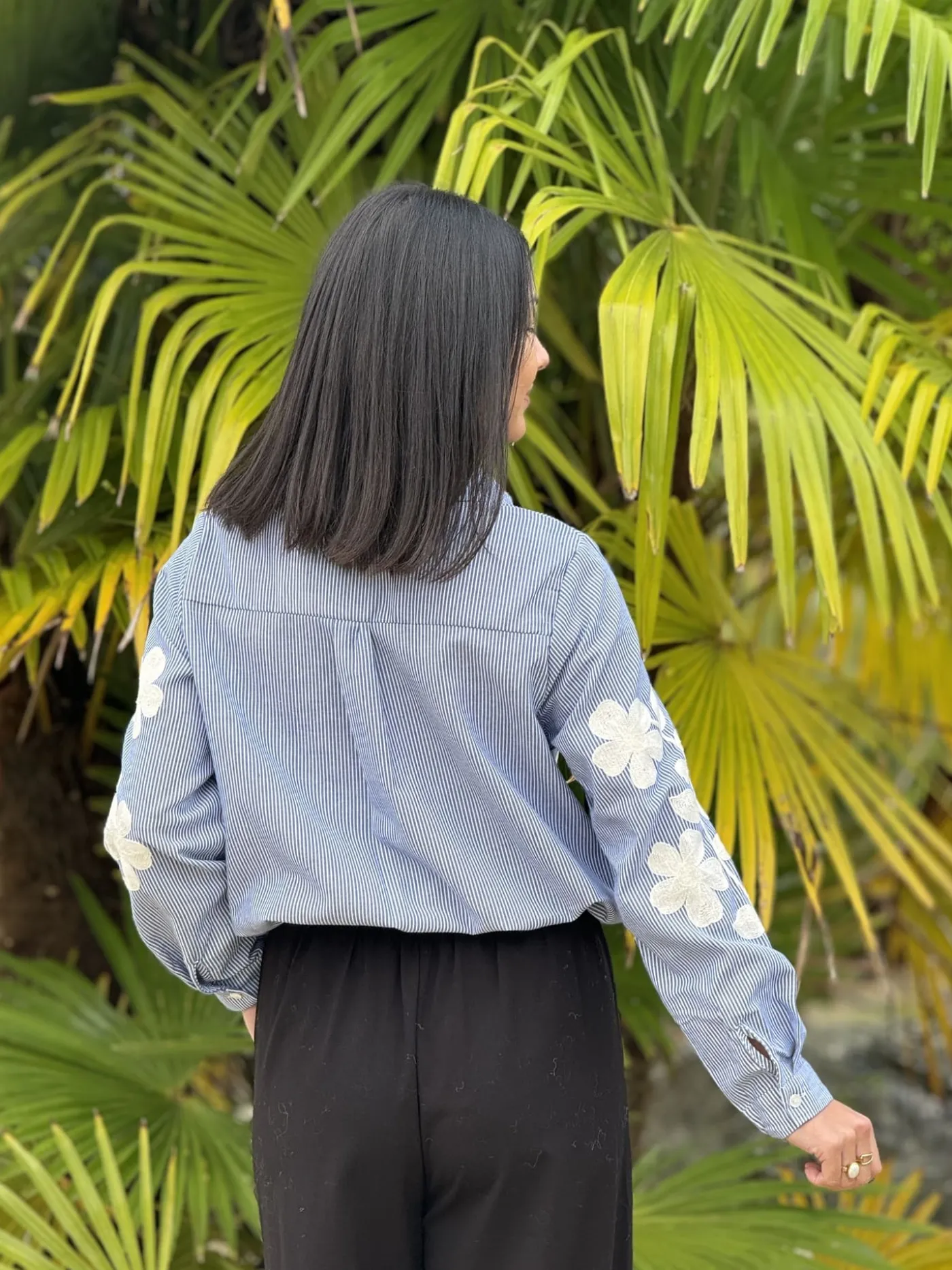 CHEMISIER A ML – GROS MOTIFS BLANC DEVANT ET HAUT DES MANCHESTaille : Mathilde mesure 1m65. Elle porte la taille S po…