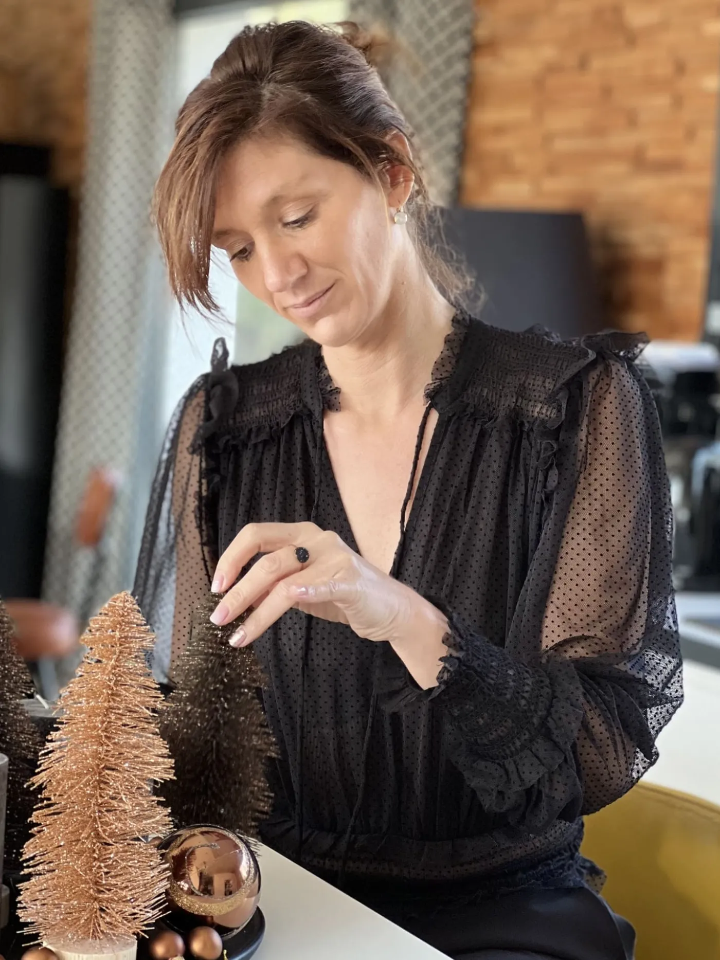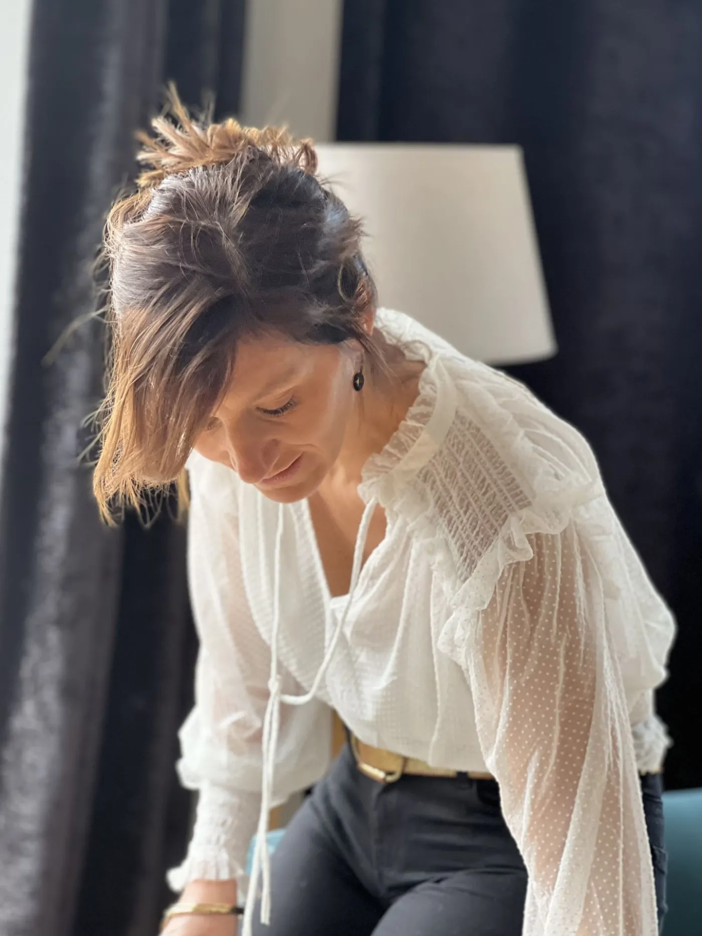 Top col vBande à la tailleLacetsTulleMélanie mesure 1m75. Elle porte la taille S pour ce modèle. Nous vous recom…