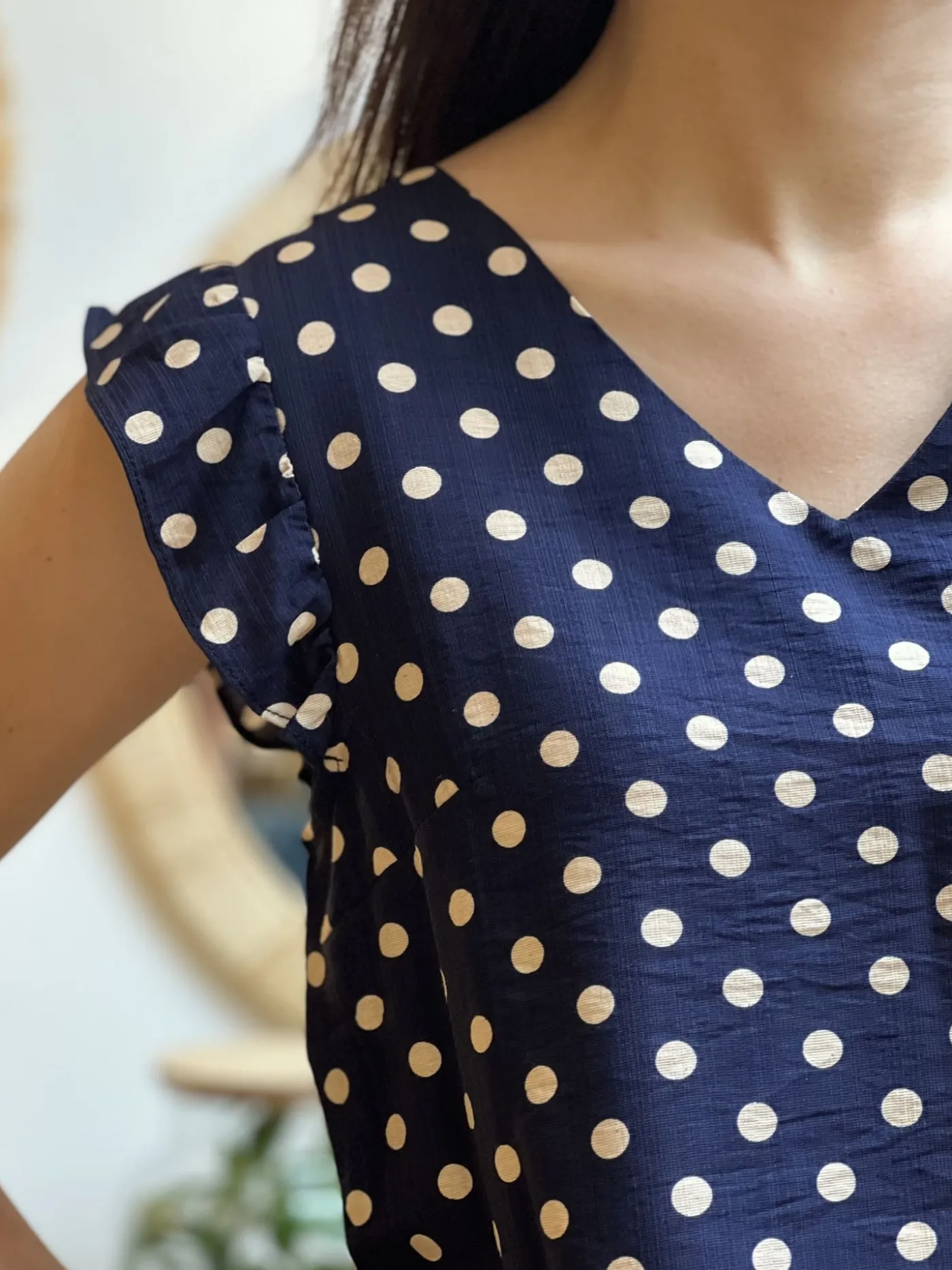 - Top à mc froufrou col v imprimé pois blanc