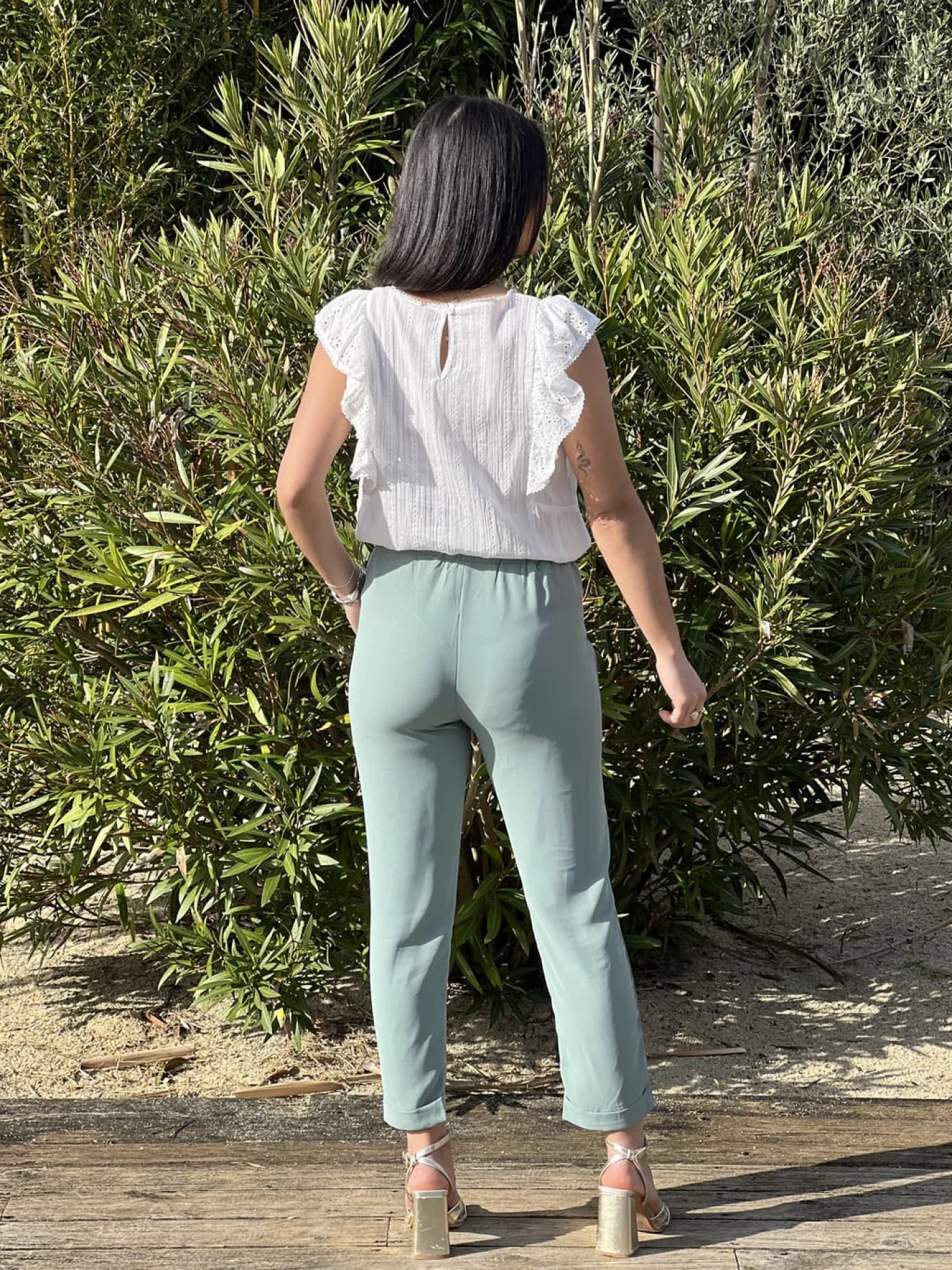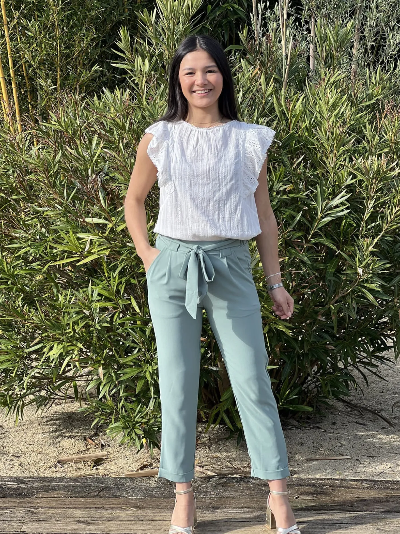 Mathilde mesure 1m65. Elle porte la taille S pour ce modèle.