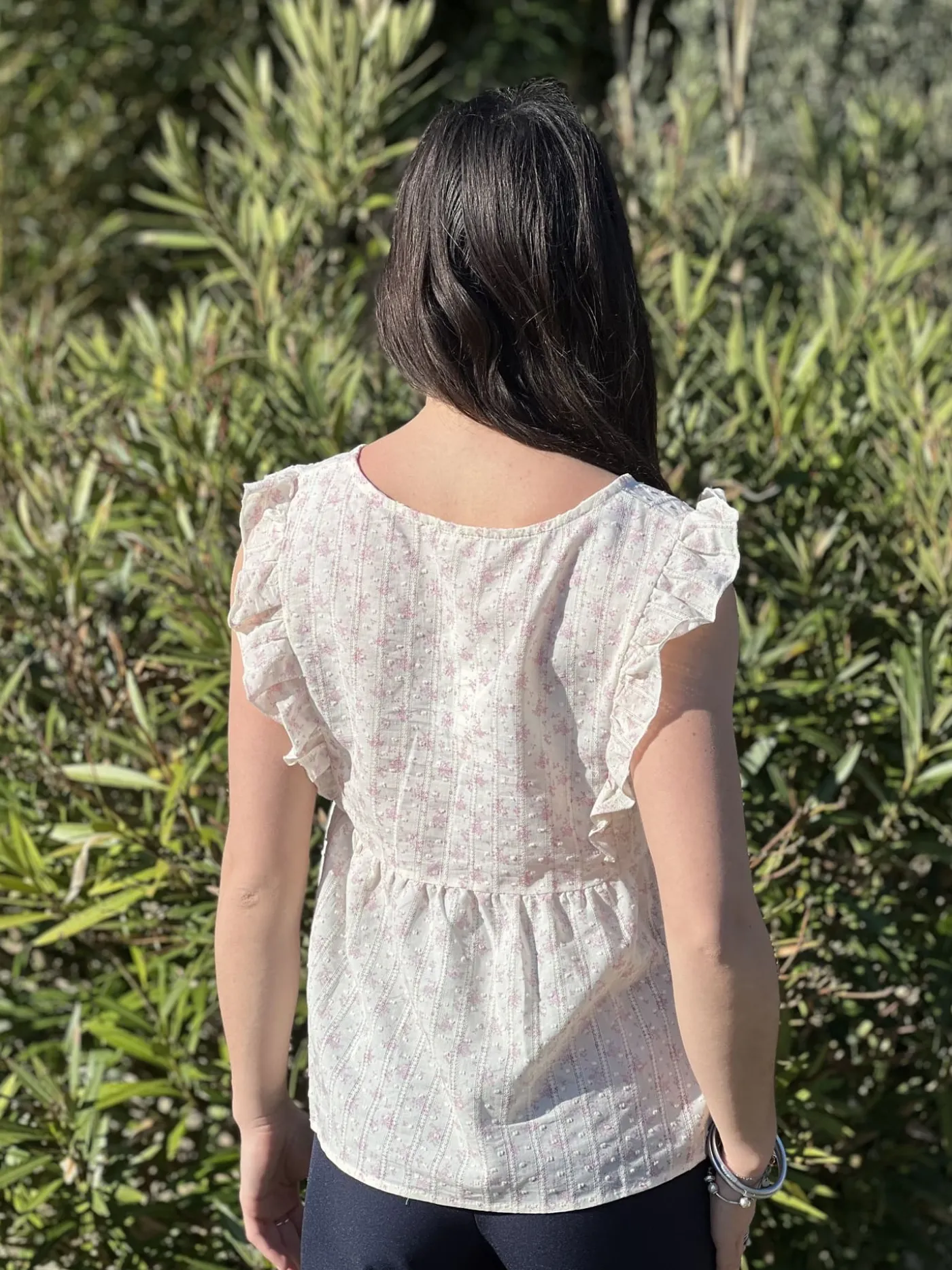 Top à mc froufrou col v – imprimpé petites fleursJustine mesure 1m69. Elle porte la taille S pour ce modèle.Taille : …