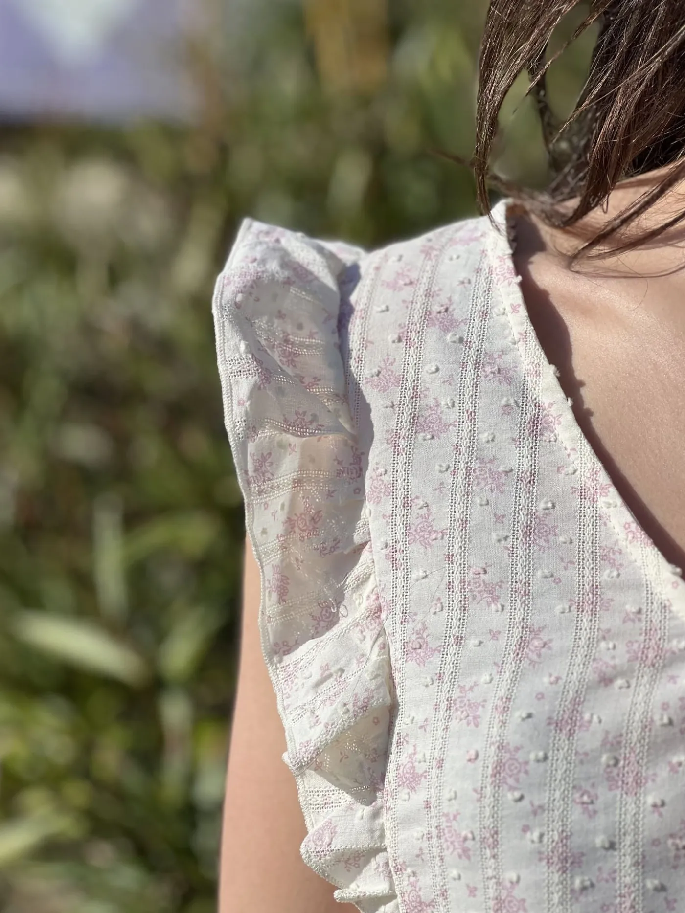 - Top à mc froufrou col v – imprimpé petites fleurs