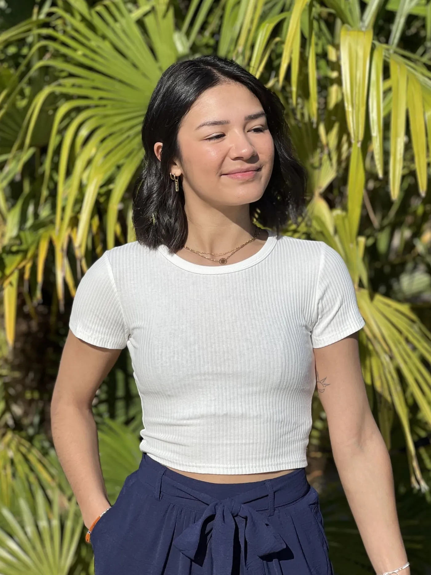 Crop top à mc col rond uniTaille : Mathilde mesure 1m65. Elle porte la taille S/M pour ce modèle. Taille : S/M (…