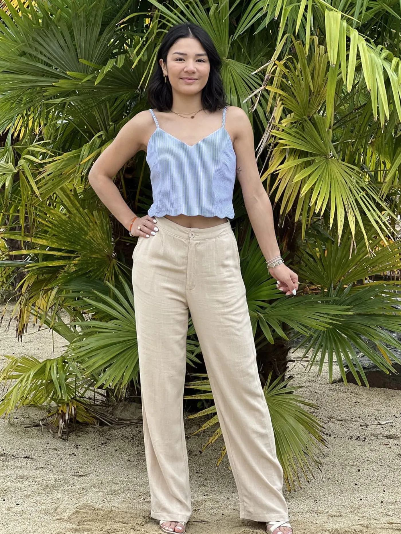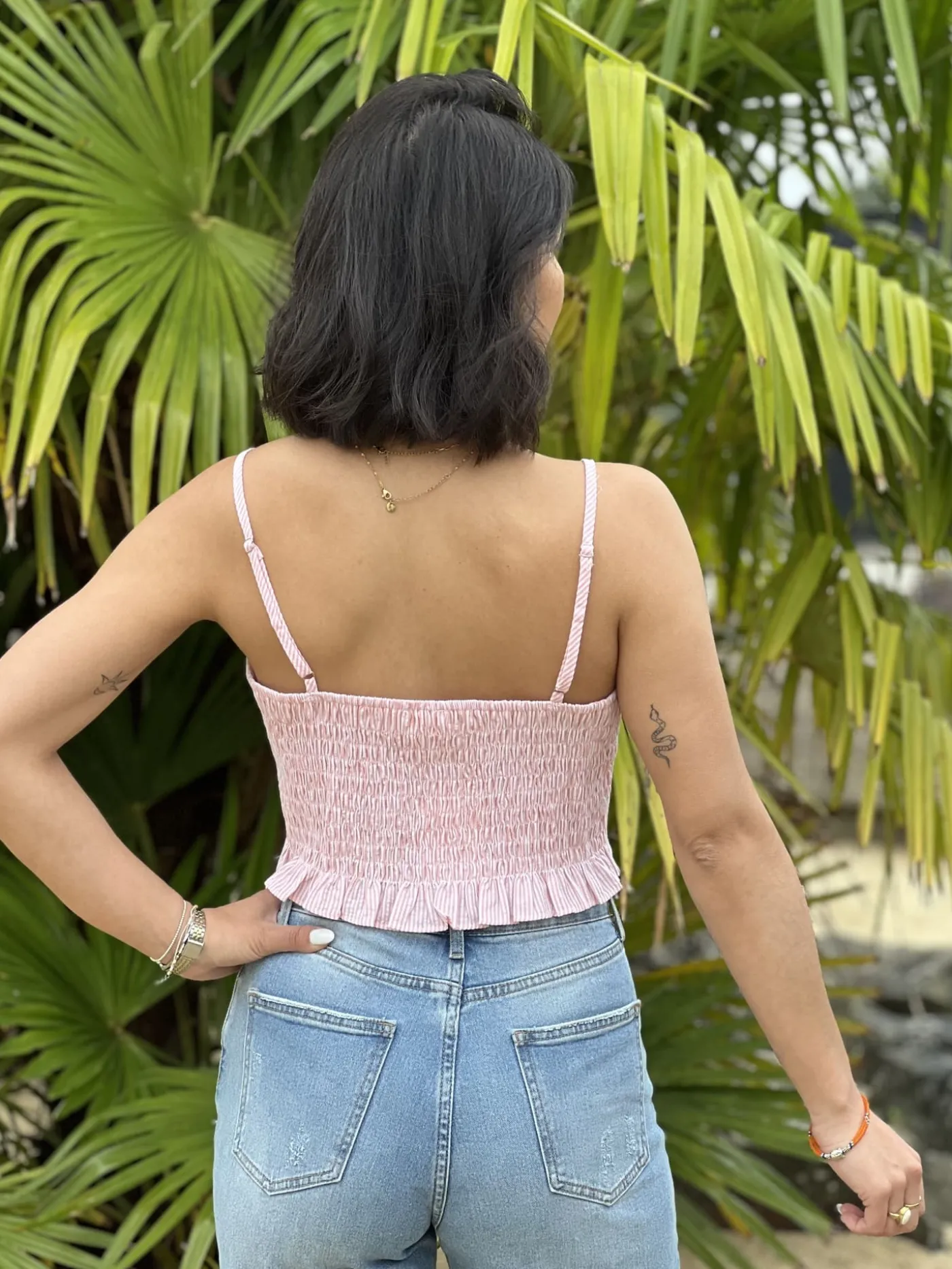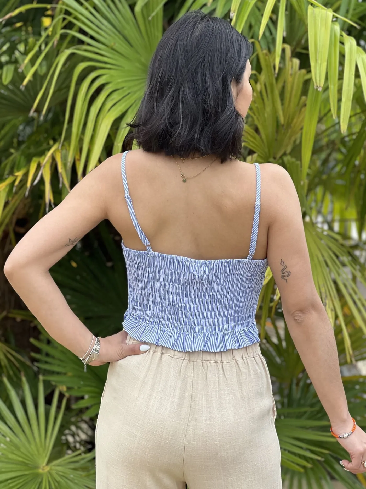 Caraco à fines bretelles col v imprimé rayuresTaille : Mathilde mesure 1m65. Elle porte la taille S/M pour ce modè…