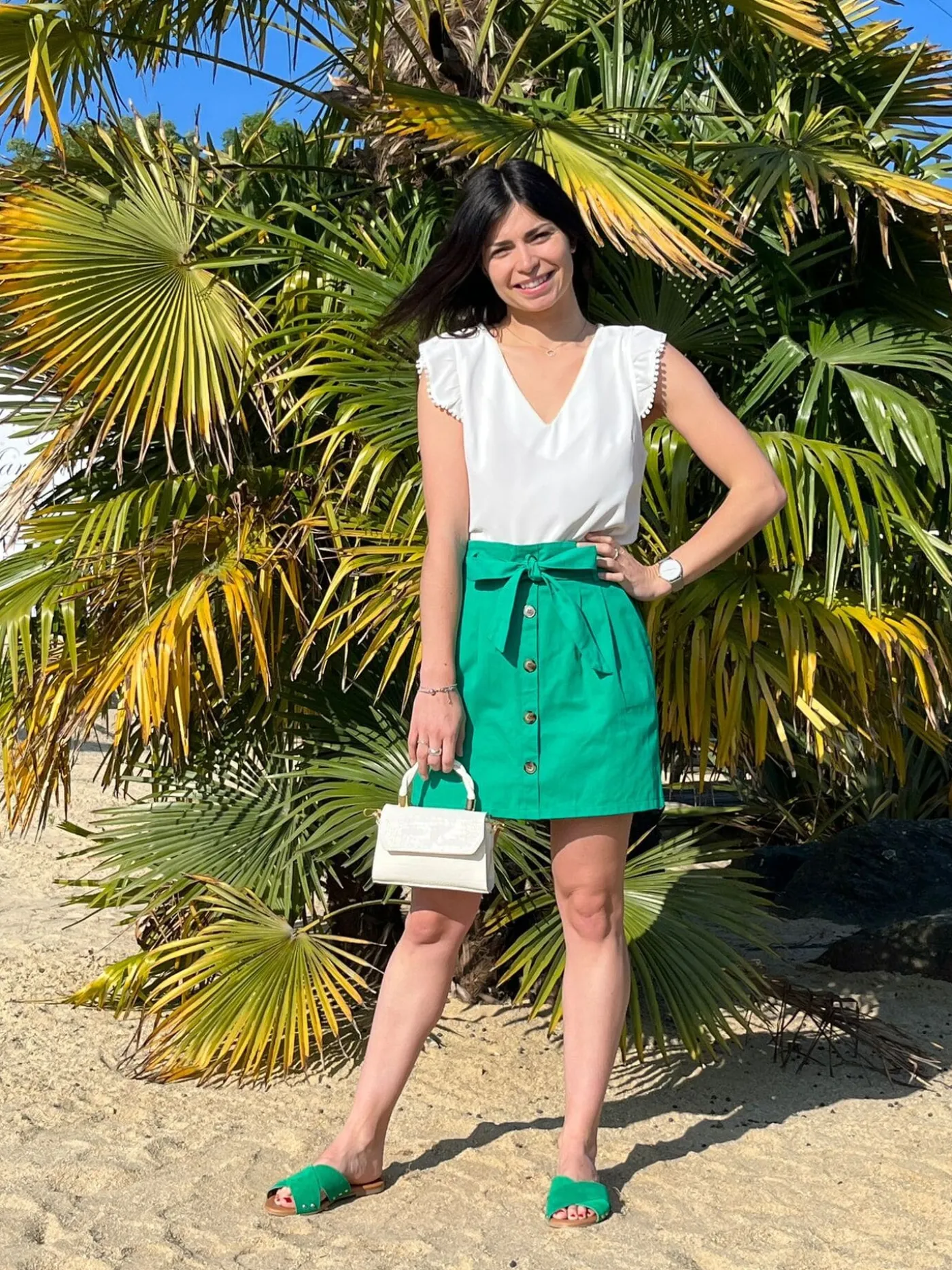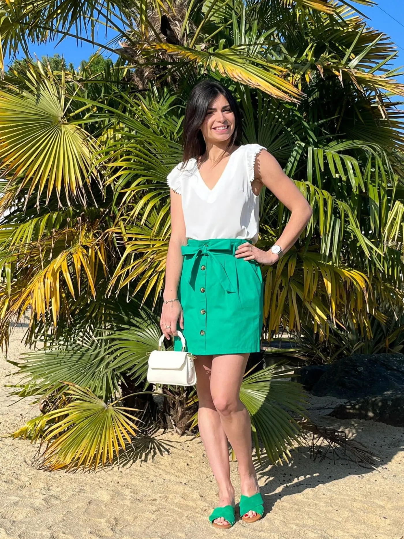 Justine mesure 1m69. Elle porte la taille S pour ce modèle.