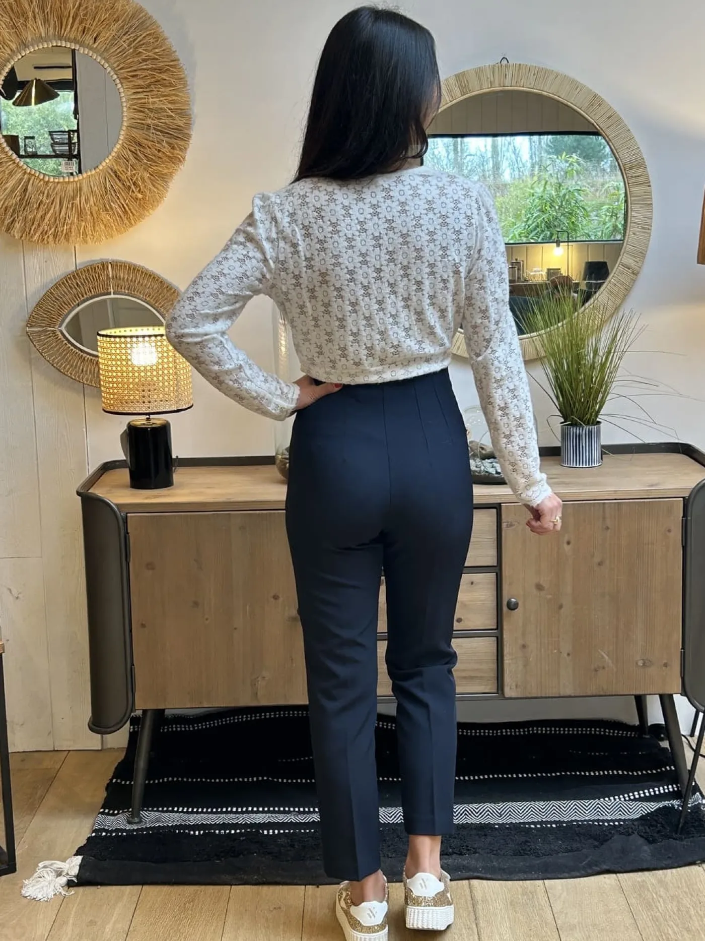 Mathilde mesure 1m65. Elle porte la taille S pour ce modèle.