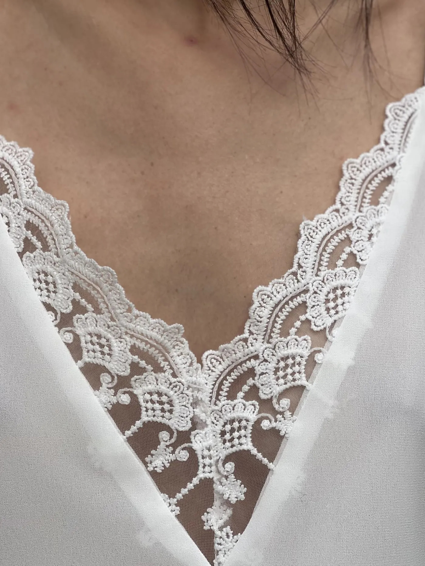 CARACO COL V DENTELLE DANS LE COLJustine mesure 1m69. Elle porte la taille S pour ce modèle. Nous vous recommandons de …