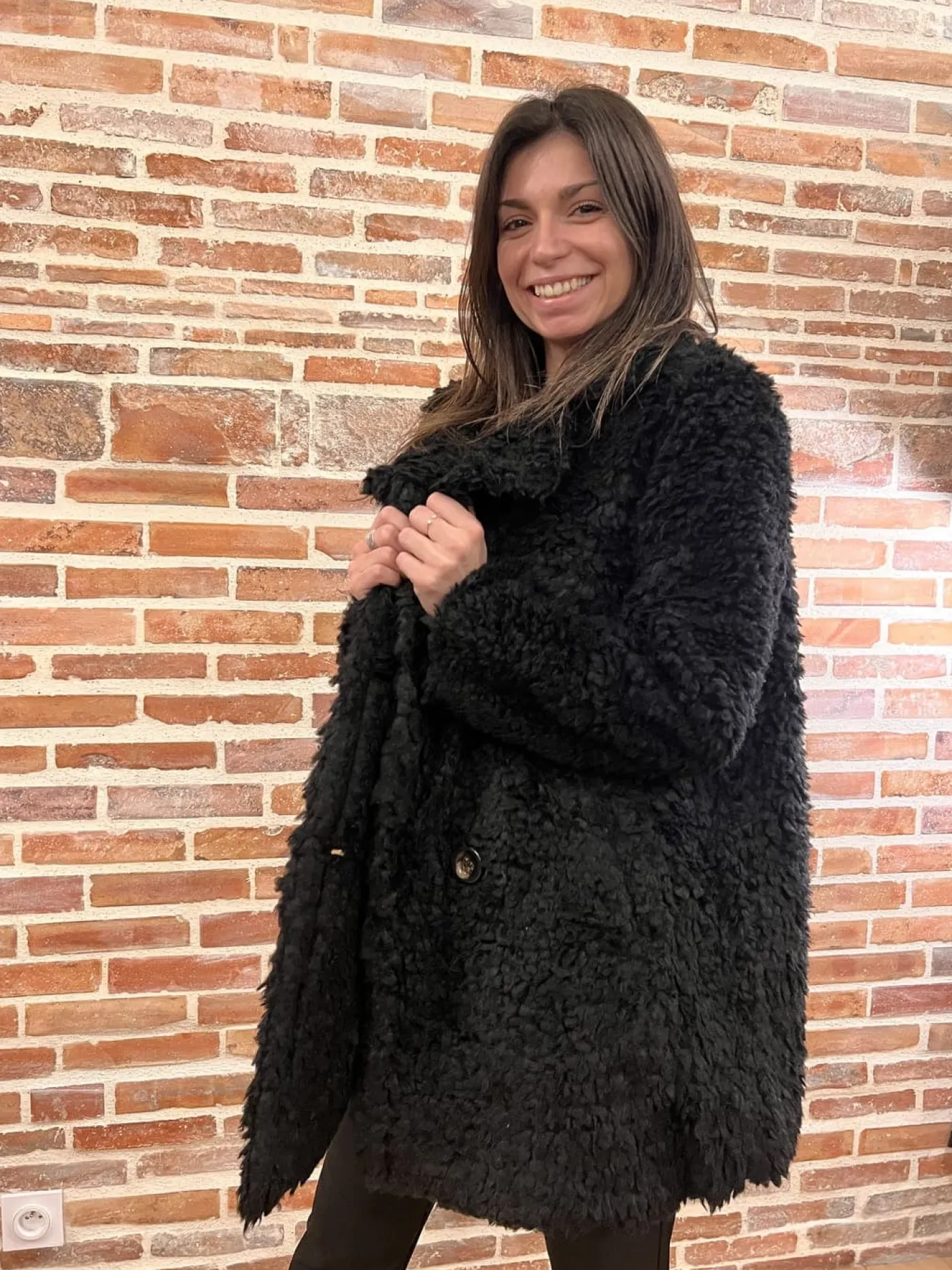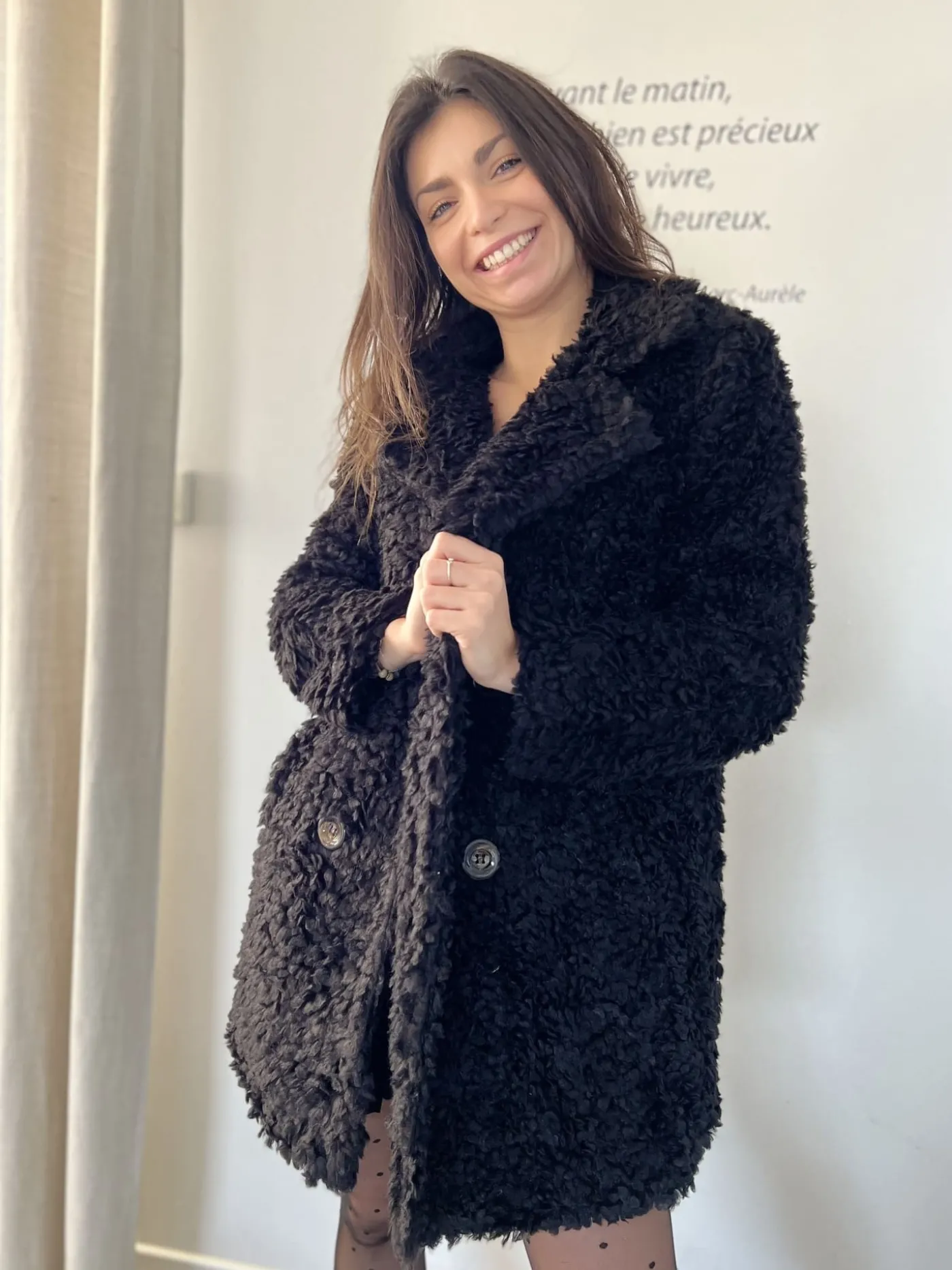 Manteau court fourrure avec boutonsNoirTaille : Justine mesure 1m69. Elle porte la taille Taille unique pour ce modèle…