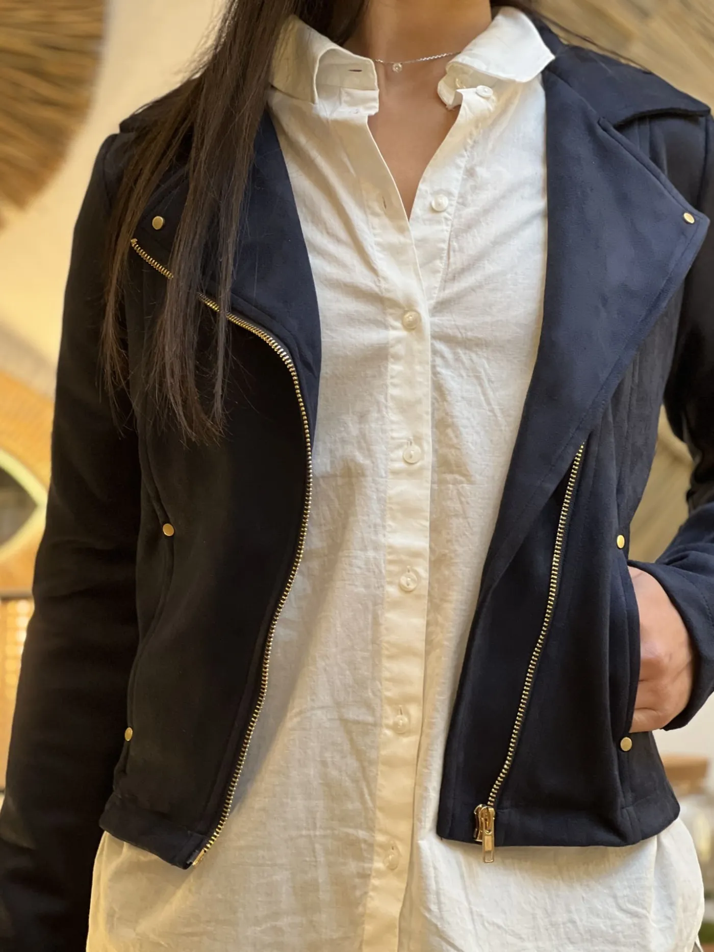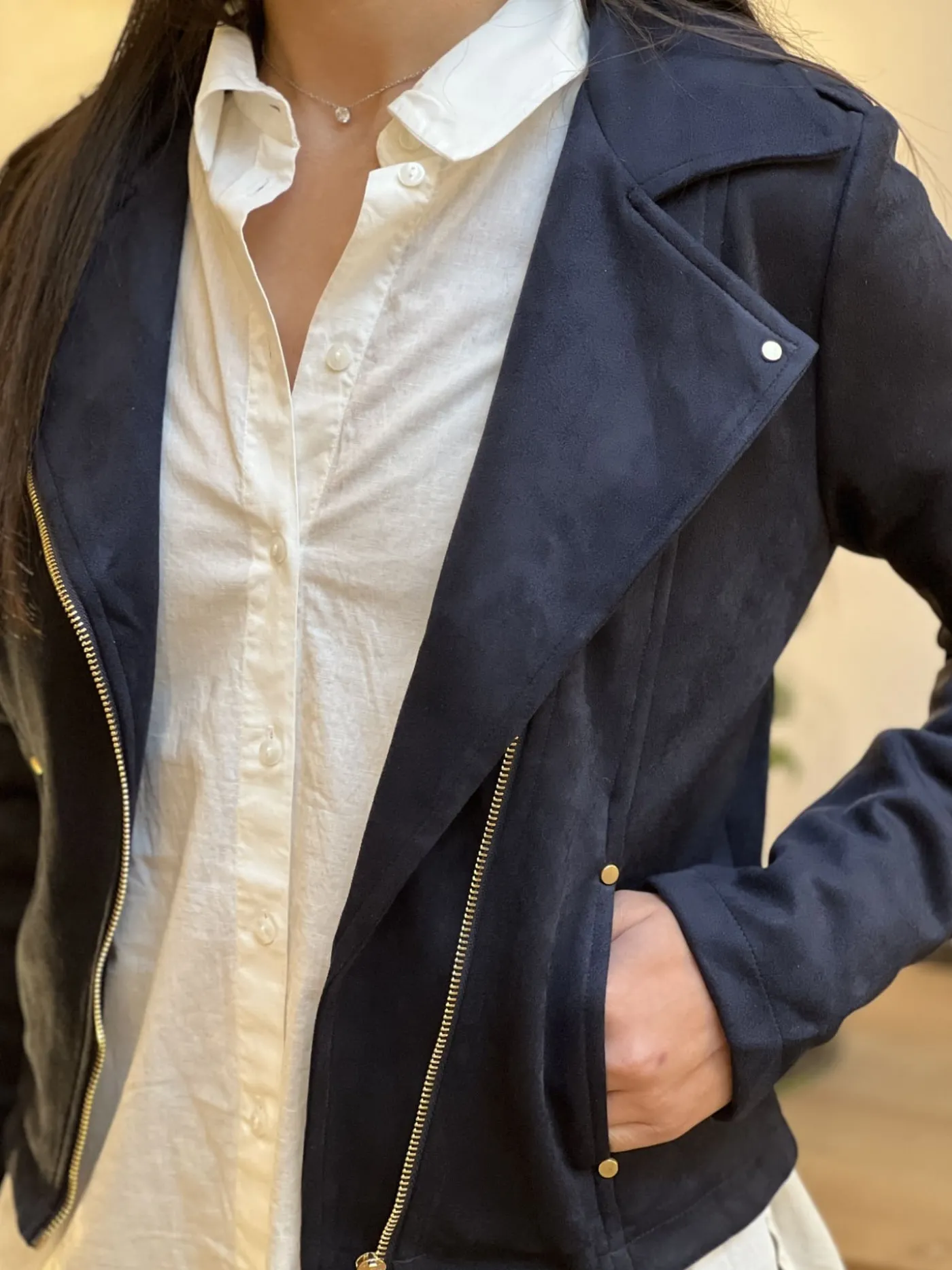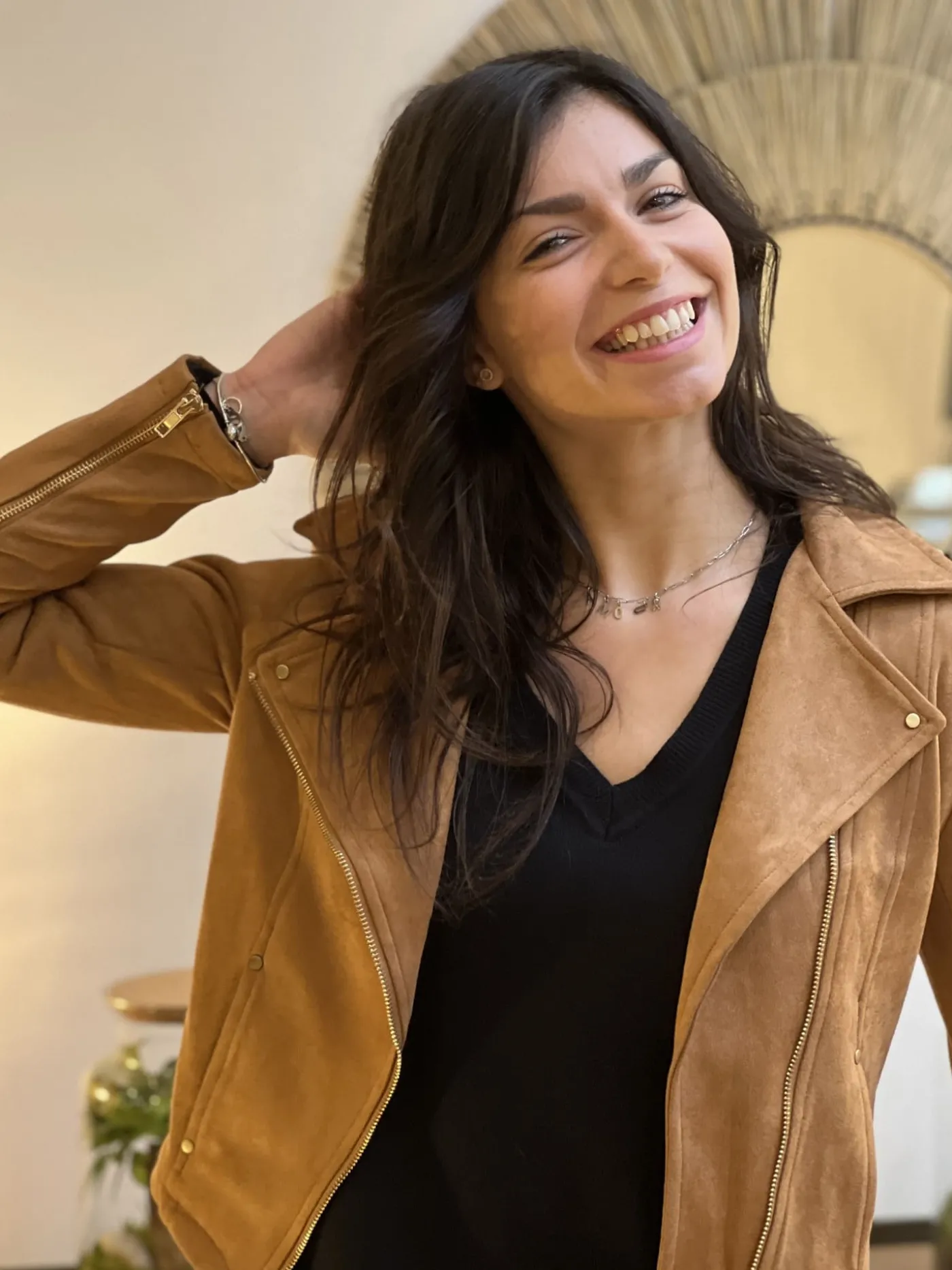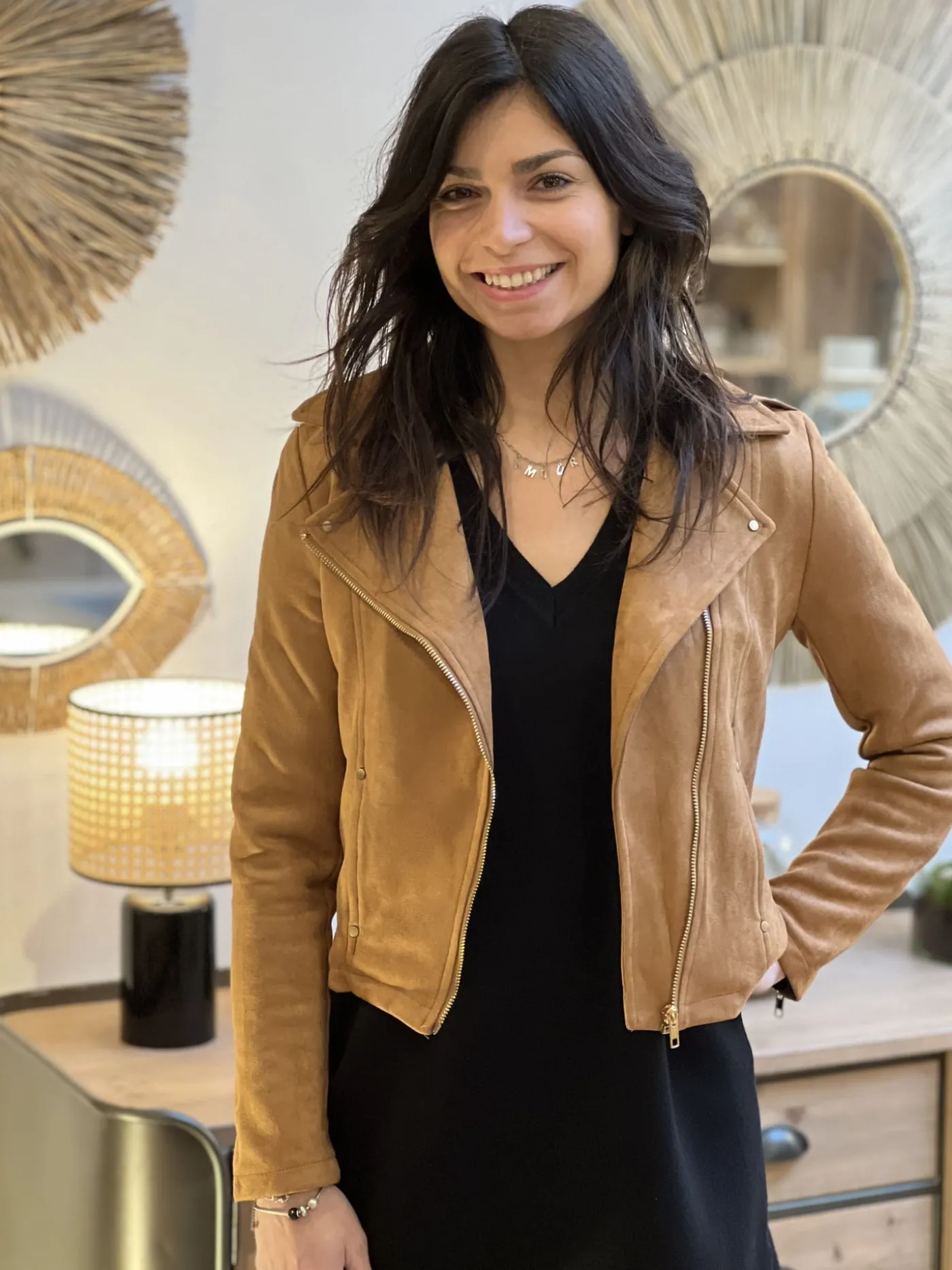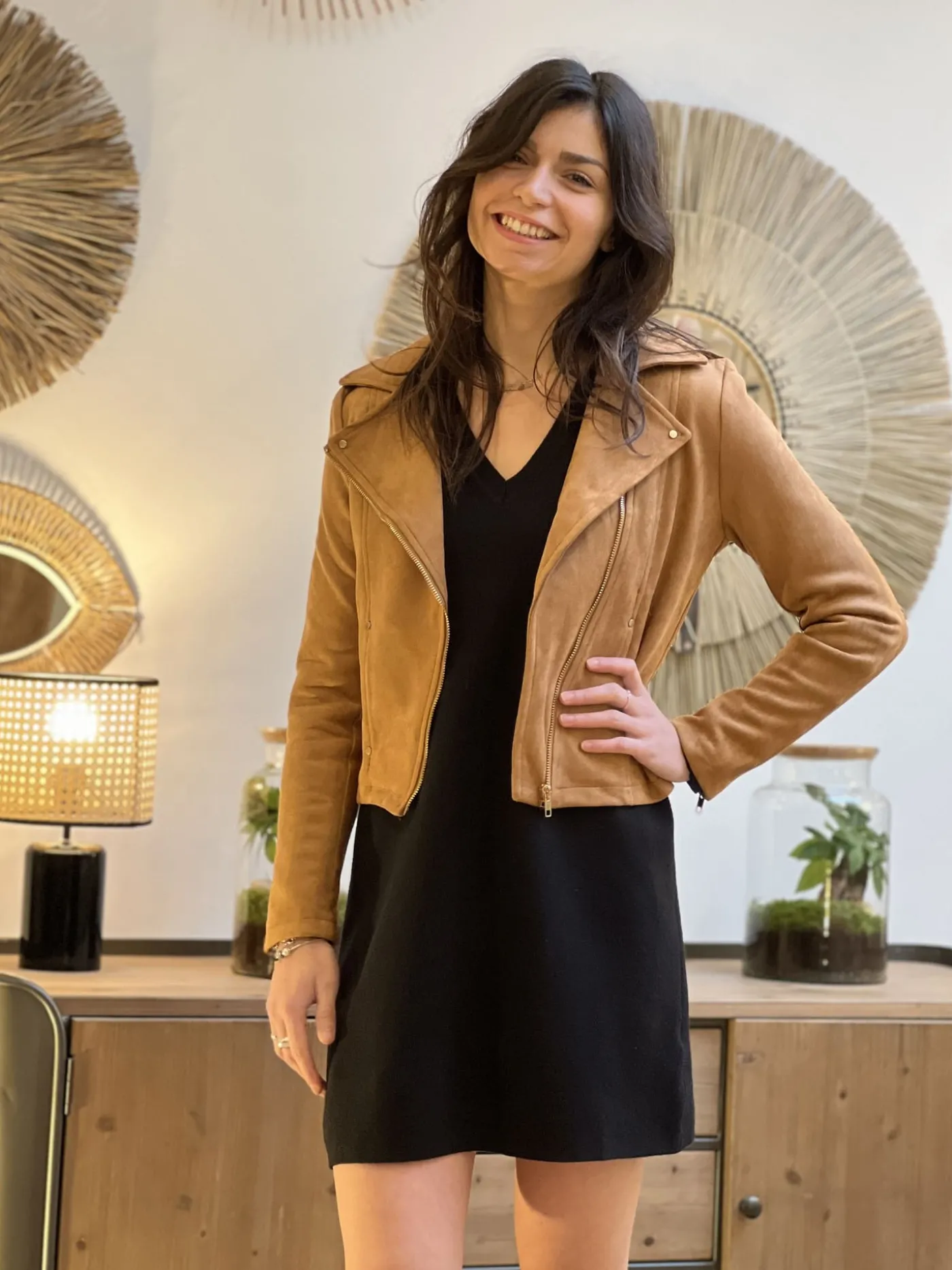 PERFECTO EN DAIMTaille : Justine mesure 1m69 et elle porte la taille S (36) pour ce modèle. Mathilde mesure 1m65 et …
